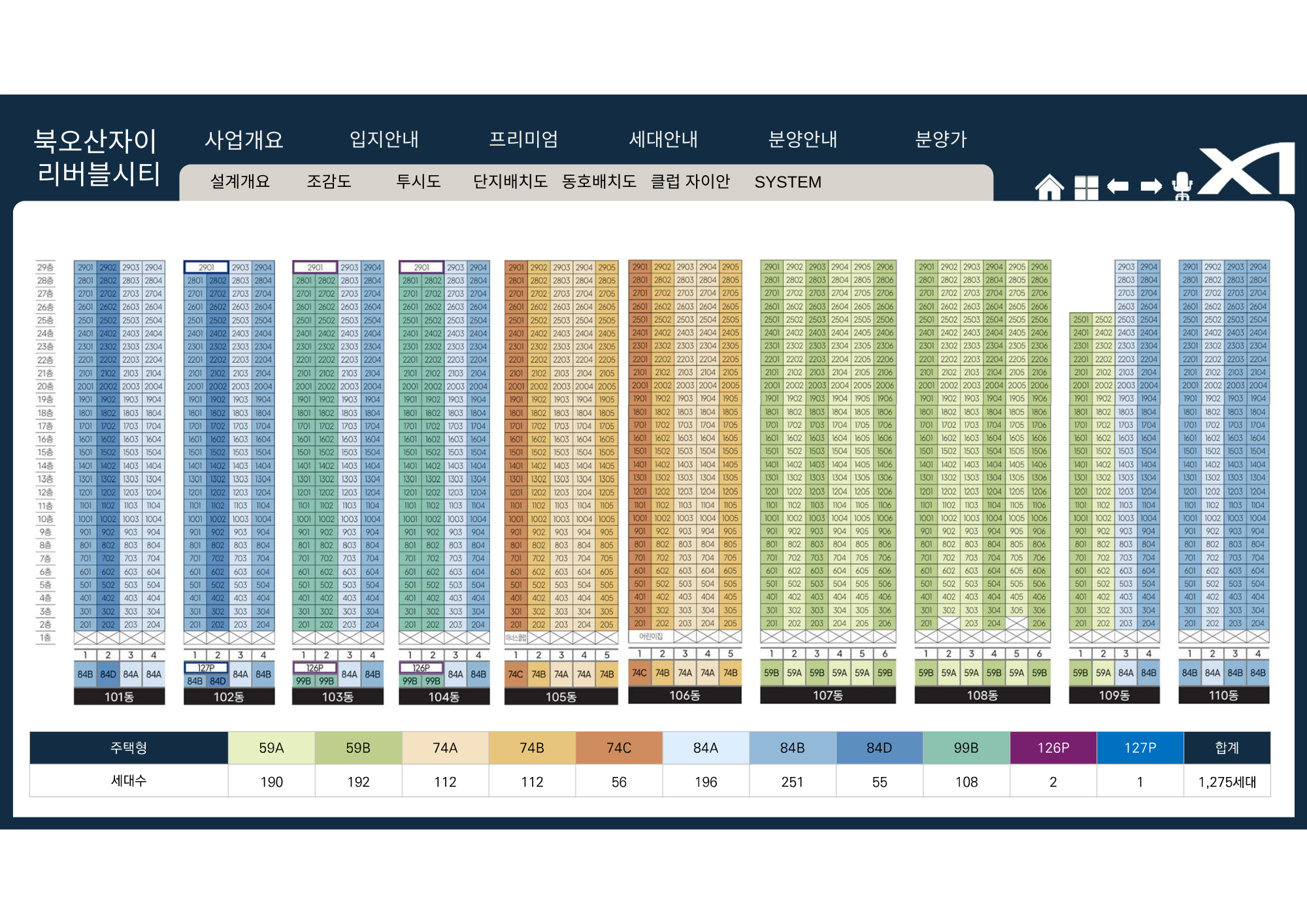 59㎡, 74㎡, 84㎡, 99㎡ 타입으로 구성됩니다.